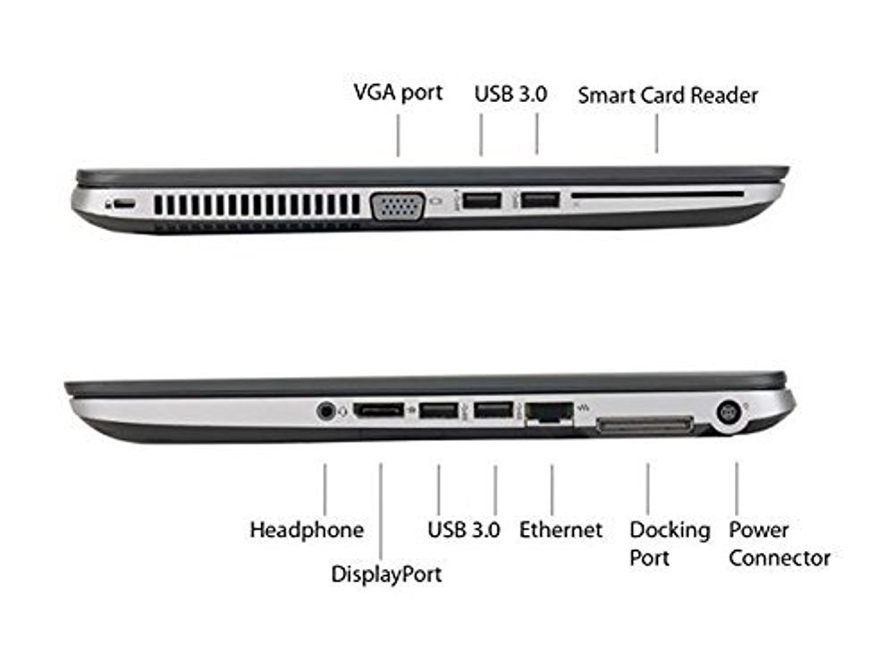 3 USB 3.0; 1 USB 3.0 charging; 1 DisplayPort 1.2; 1 VGA; 1 Combo stereo headphone/mic jack;1 AC power; 1 RJ-45; 1 side docking connector