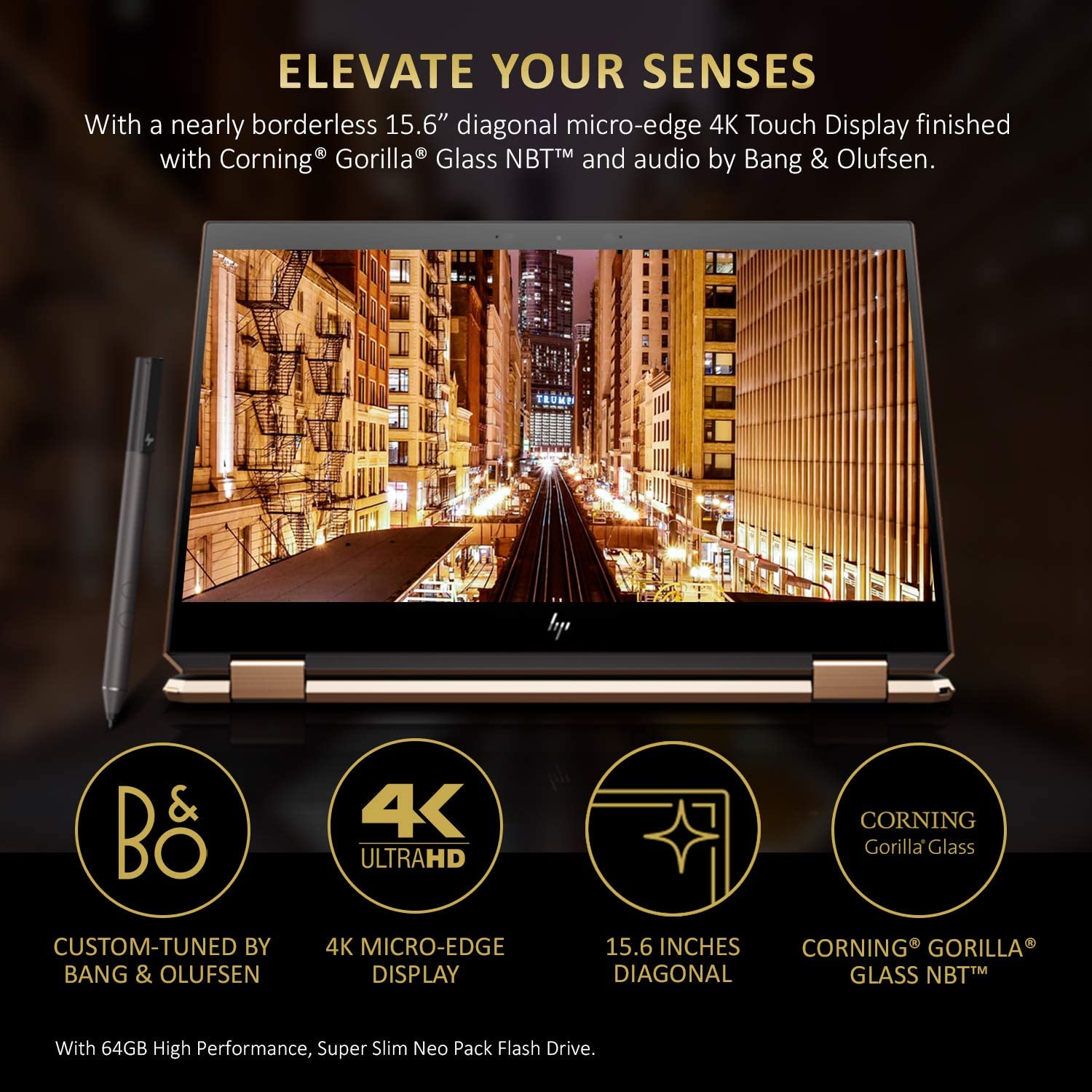 • IMMERSIVE DISPLAY AND SOUND: You’ll love the 15.6″ diagonal 4K (3840 x 2160) IPS IPS micro-edge BrightView WLED-backlit touch screen with Corning Gorilla Glass, that brings your videos and photos to life. It also includes Bang & Olufsen Quad Speakers (With HP Quad Speakers),12 HP Audio Boost, and custom tuning by the experts at Bang & Olufsen, entertainment comes to life with sound you can feel, HP Audio Boost, Dark Ash Silver.