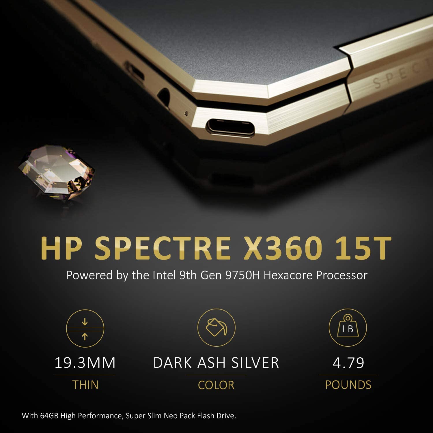 HP Spectre x360, 9th gen Gemcut 15t ,Touch 4K UHD,i7- i7 9750H Hexacore,NVIDIA GeForce GTX 1650 (4GB),512GB NVMe SSD,16GB RAM,Win 10 Pro Pre-Installed by HP